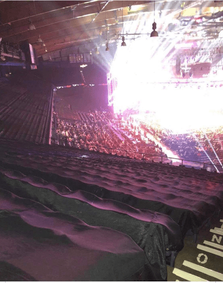 WWE will often bring out huge black tarps to cover empty seats. That way it looks like a solid black sheet instead of visible empty seats. They had to break out extra tarps last night.