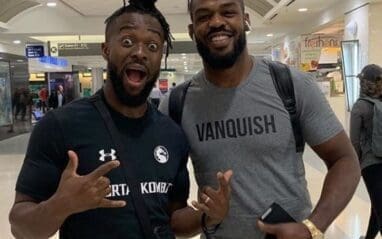 As you can see Kofi ran into UFC Light Heavyweight Champion Jon Jones in the airport last night, in what was a pretty cool meeting of the minds. Jones is currently preparing for his latest title fight against Thiago Santos, whereas Kingston is set to go one on one with Kevin Owens for the WWE Championship at Money in the Bank.