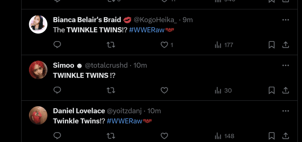 Some fans were taken aback by this new Twinkle Twins name. We will have to see if it sticks, but Chelsea Green may have been the first to use it in a tweet yesterday to hype their match during the January 8th episode of WWE RAW.