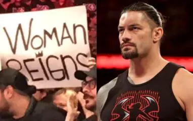 So when WWE saw a pair of signs that said: “shit hole” and “woman Reigns” they didn’t waste much time taking them.