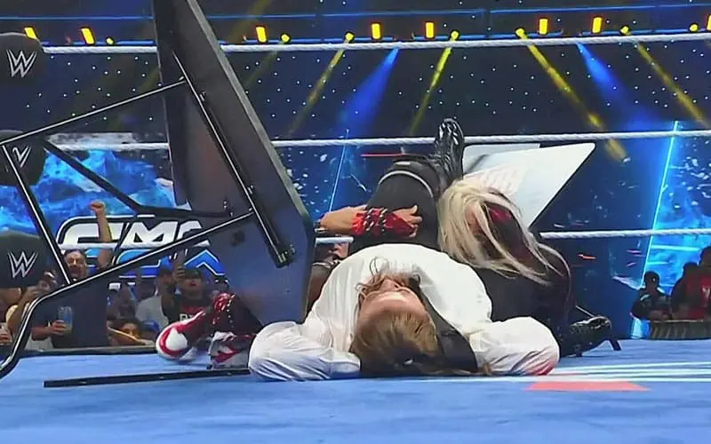 With kendo stick assistance from Giulia, Zelina Vega hoisted Niven up and delivered a thunderous powerbomb through the Slim Jim Table, giving the new branding its first major on-screen destruction.