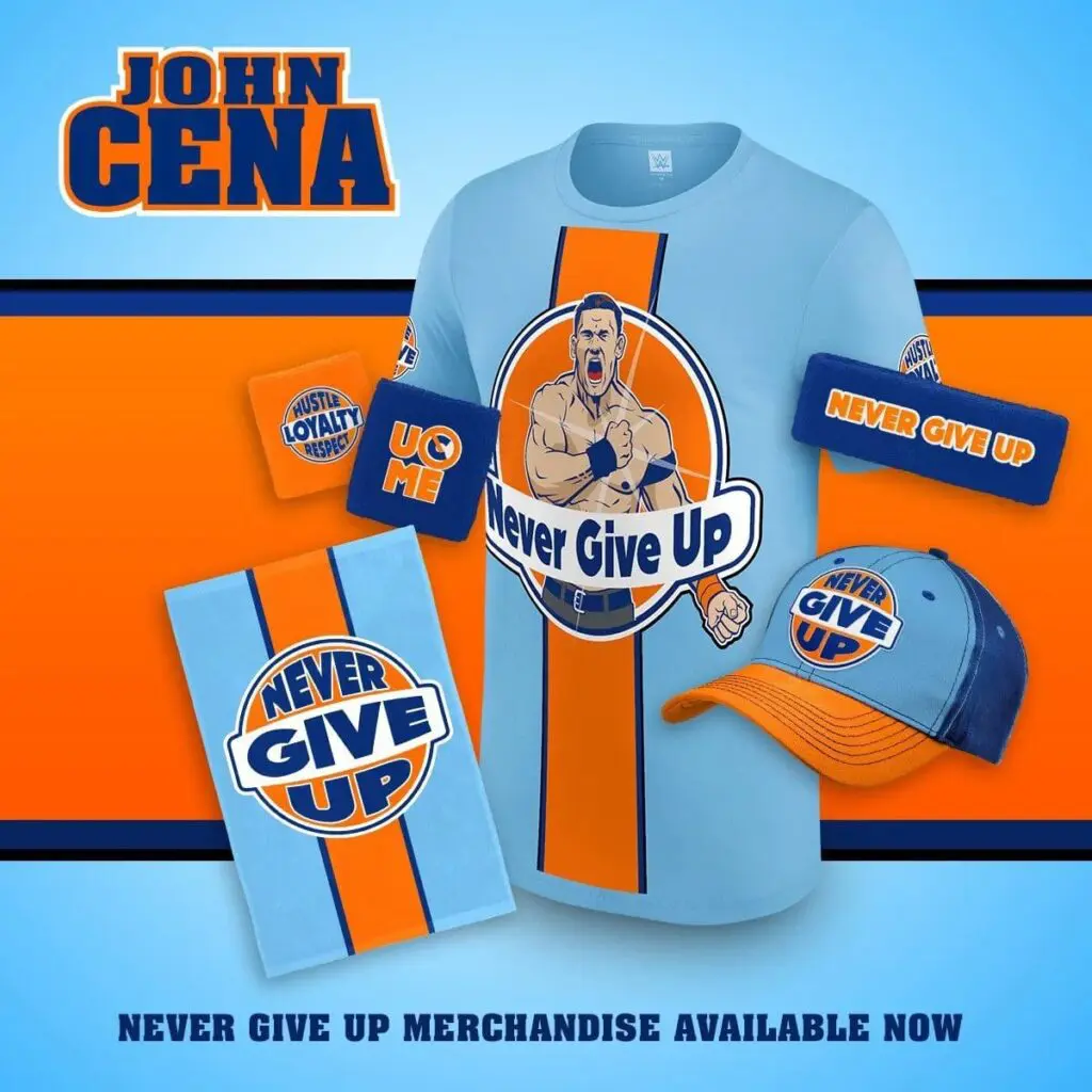 To mark the return of the thirteen-time WWE Champion, the WWE Shop has introduced an array of new merchandise, including T-shirts, towels, wristbands, and a hat, all elegantly designed in the vibrant colors of blue and orange.