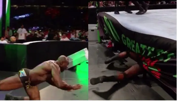 The Greatest Royal Rumble took place on April 27 and the episode of Ride Along debuted on the 30th. This means WWE had to scramble back and edit the footage of Titus O’Neil’s Greatest Royal Rumble botch into the show.