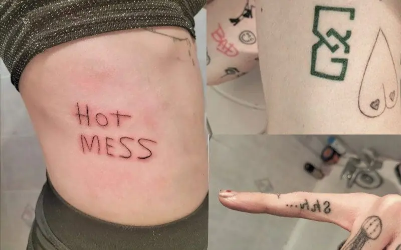 Finally, added the Hot Mess lettering on my ribs to my ever-growing collection of @ImChelseaGreen themed stick and poke DIY tattoos