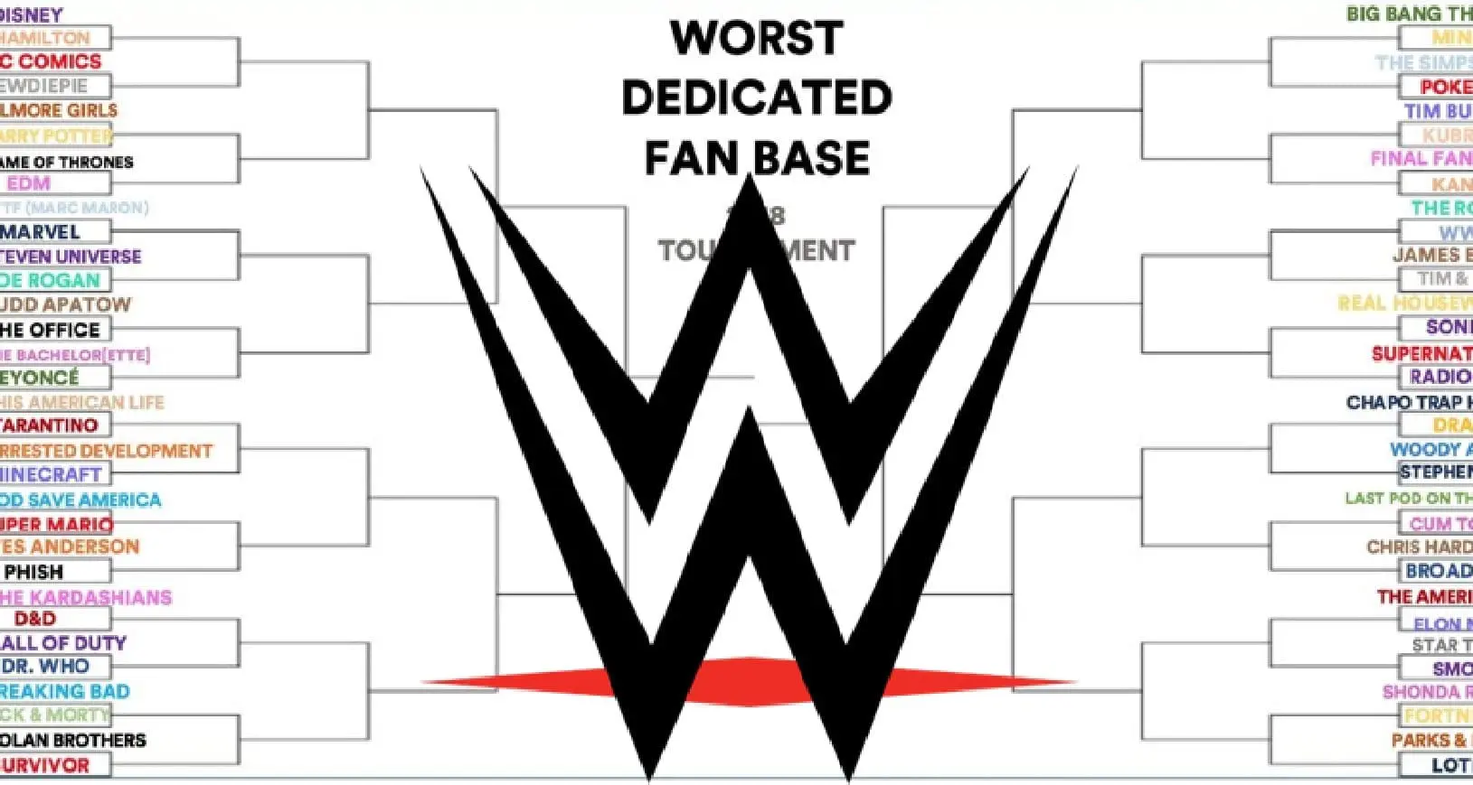 WWE fans have a lot of opinions, but so do fans of many other things. Twitter user Michelle Spies recently created her own bracketology to determine who is the Worst Dedicated Fan Base and WWE fans are right there on the list.