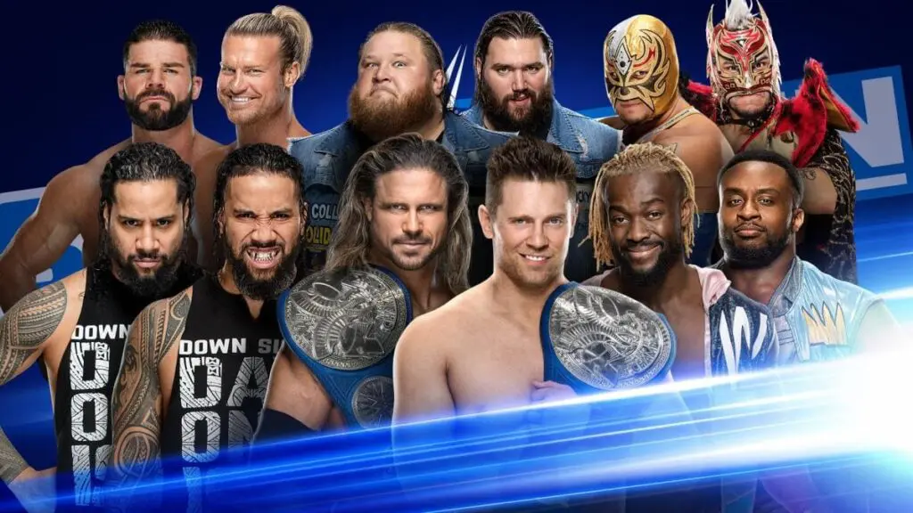 Tucker and Otis got New Day up for double vertical suplexes and then they clotheslined Kingston over the top rope and shoved Big E out. Otis hit New Day with a slingshot double clothesline as they went to commercial.