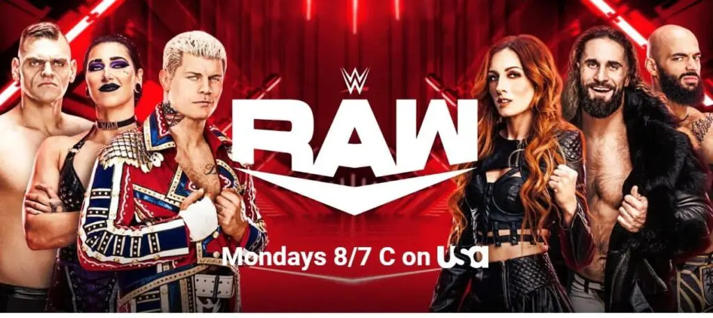The updated Raw banner showcased Gunther, Rhea Ripley, Cody Rhodes, Becky Lynch, Seth Rollins, and Ricochet. However, the banner has been modified once again, with Jey Uso replacing Ricochet, as shown below.
