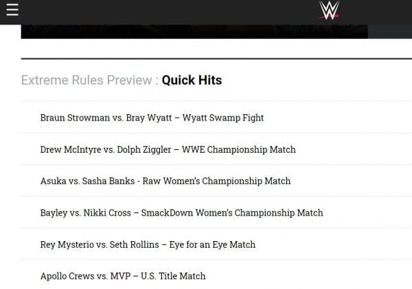The Horror Show at Extreme Rules’ page on WWE’s official website has yet to see that match added. No official match graphic showing a Bar Fight at Horror Show at Extreme Rules was published either. The graphic might be ready to go, but it’s not official just yet.