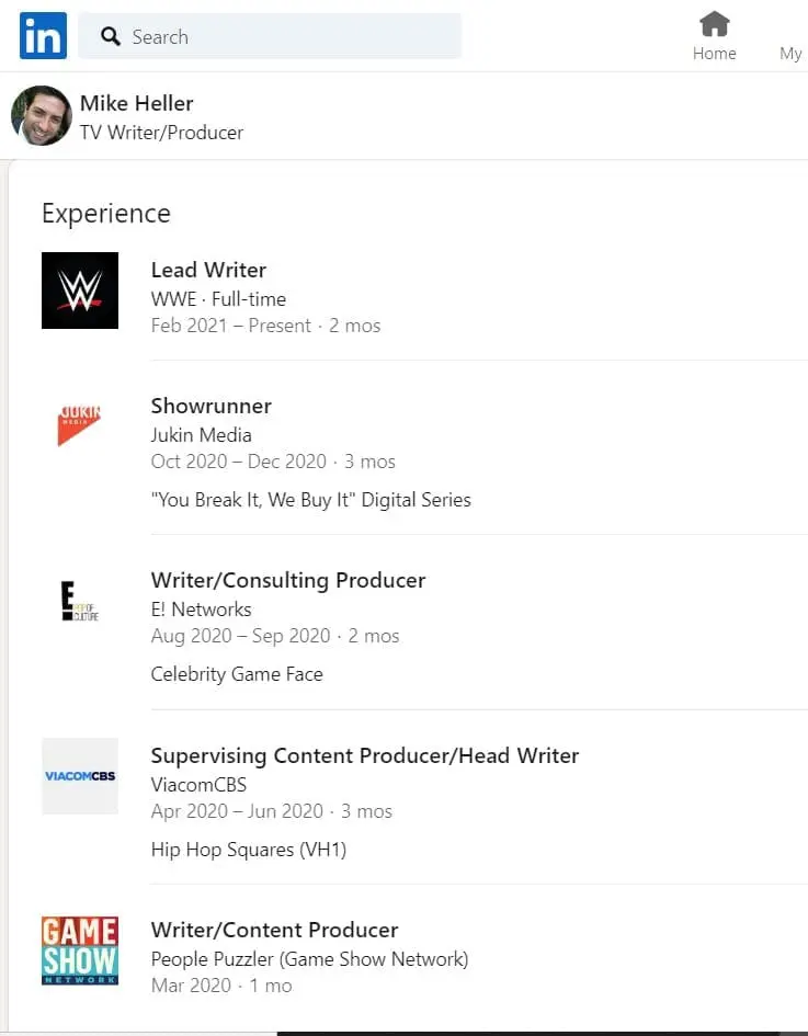 As you can see from his LinkedIn profile below, Heller has been with WWE since February 2021. His previous experience included working on the “You Break It, We Buy It” digital series for Jukin Media. He worked for E! prior to that as a writer.
