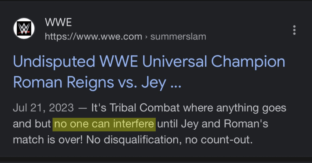 It specifically stated that no one can interfere during the match between Roman Reigns and Jey Uso unless the match concludes. Therefore, it is evident WWE ended up making a major change to the match without announcing it.