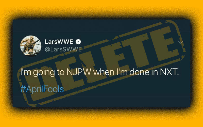 WWE had Lars Sullivan delete his post on Twitter that was supposed to be an April Fools joke. WWE apparently doesn’t allow their talents to mention New Japan Pro Wrestling on Twitter and had him remove the post. Below is a screen cap of what he originally wrote.