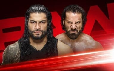 Jinder Mahal and Sunil Singh make their way to the ring. Jinder grabs a microphone and the fans boo. He says he challenged Reigns to this match tonight to prove a point: he’s not as big as he thinks he is. He says of course Roman is a multi-time Champion and he’s main evented WrestleMania, but the winds are shifting. He says he can see Reigns suffering, sucking air, unable to keep up with the Modern Day Maharaja. He predicts his victory over Reigns and The Big Dog has heard enough.