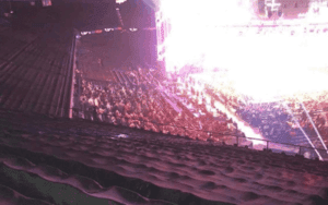 WWE will often bring out huge black tarps to cover empty seats. That way it looks like a solid black sheet instead…