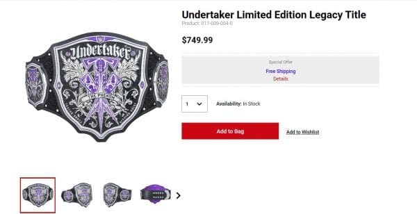 The belt is listed at $750. The good news is that you can get free shipping if you order today. WWE Shop was teasing a big Undertaker reveal and it appears they were hyping this Legacy Title.