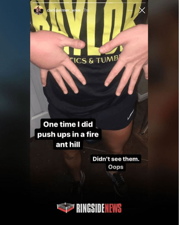 Dani Palmer took to her Instagram stories and uploaded a photo of her hand being swollen after doing push ups on an anthill.