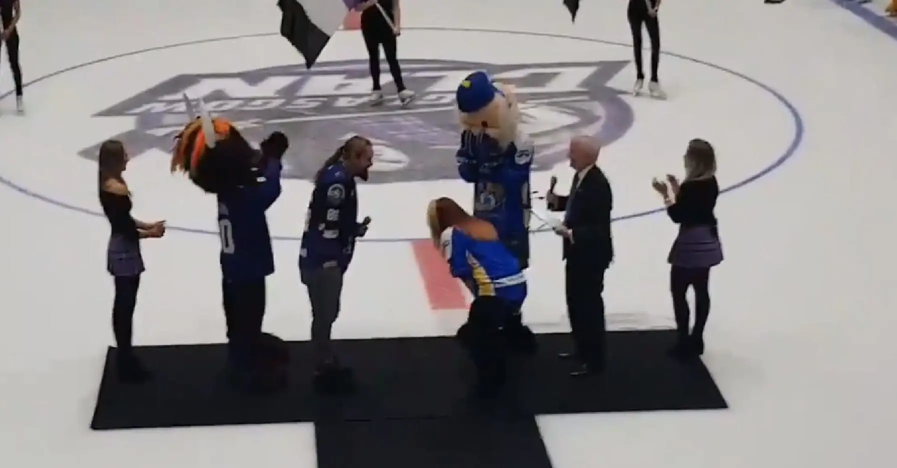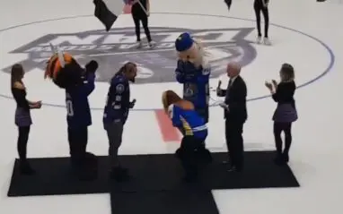 During halftime of the Glasgow Clan game, Wolfgang took the ice with his girl and got down on one knee after having some fun. She thought they were going to be taking part in a much different activity.