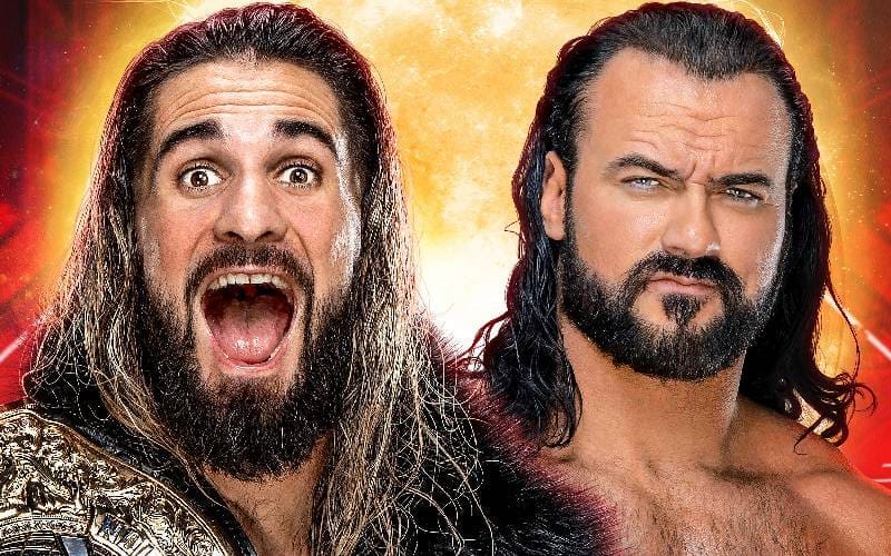 The match starts and Rollins attacks McIntyre. He sends Drew out of the ring. Drew fights back and slams Rollins on the announcer’s table. Seth with a boot to Drew. He goes for a suicide dive but McIntyre catches him and hits a bell-to-belly suplex.