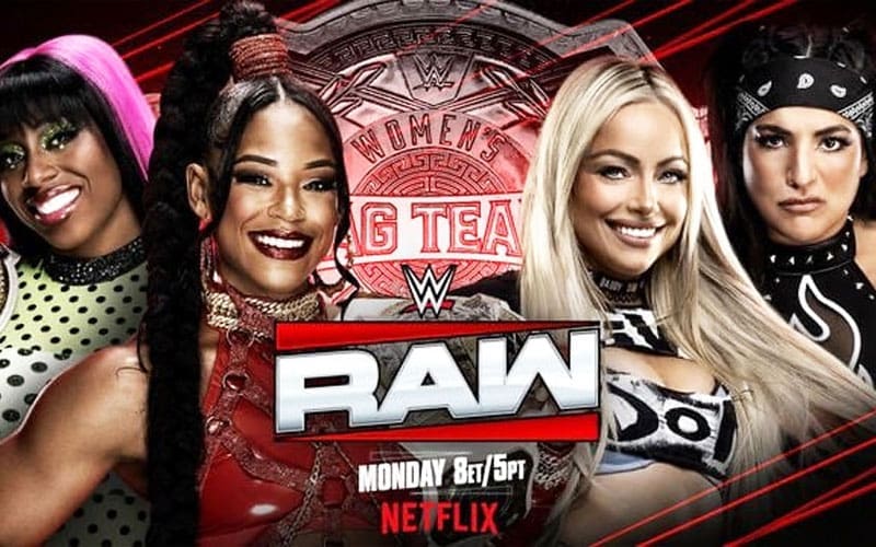 Liv Morgan and Raquel Rodriguez then make their way down to the ring for the main event of the night, which is a WWE Women’s Tag Team Championship Match.