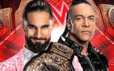 Damian Priest’s music plays and he walks out to the ring. Seth Rollins’ theme song plays and he walks to the ring.