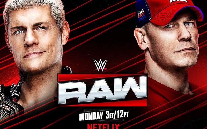 The crowd’s chanting brings out John Cena to kick off the show. John steps into the center of the ring. Before he can say a word, Cody Rhodes’ music hits. Cody walks down to the ring. John circles Cody before he can grab a mic.
