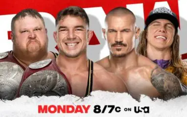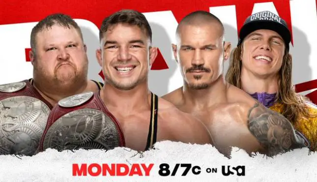 Orton goes to the corner and readies for a punt but Gable rolls out of the way and grabs an ankle lock! On the floor, Riddle attacks Otis with his scooter and beats him down! Gable gets distracted, allowing Orton to roll out of the ankle lock, sending Chad into the buckles, then catches him with a gnarly RKO and scores the pinfall!