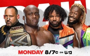New Day are interviewed backstage and asked about their gameplan. Kofi says they’re 11X Tag Team Champions and recently named the all-time greatest WWE tag team, so they don’t change their gameplan. Kofi says Bobby and MVP are reacting to the bombs he dropped on them last week. Kofi mocks MVP and says they can take all the time off they want, all the lady friends they want, because Lashley will be relieved of his WWE Championship responsibilites.