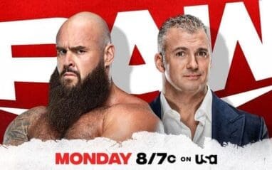 Shane O’Mac is in the ring and out comes Braun Strowman. Shane gets out of the ring to get a better microphone and starts walking back around the ring and up the ramp. Shane says he wanted to say this face-to-face and Braun looks confused. Shane says what Braun said has made him do some introspection and he’s right, he’s been having fun at Braun’s expense. Shane says there is one thing they have to get done, is come to an understanding. Shane comes back down the ramp and stands outside the ring, then turns and walks back up.