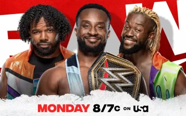 Woods comes in and gets hit with an uppercut but fires right back with a superkick for a near-fall. Bobby Lashley comes running down the ramp and hits Big E with a spear, then lifts Kofi and runs him into the ring post. Lashley drops Jey with a clothesline, then tosses Jimmy into the steel steps. For some reason this match isn’t over and Reigns hits a distracted Xavier with a spear for the win.