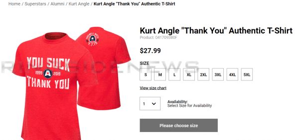 To celebrate Angle’s retirement WWE just released an official “You Suck/ Thank You” t-shirt for the WWE Hall Of Famer. It is a rather simple design, but that is the style WWE often goes with.