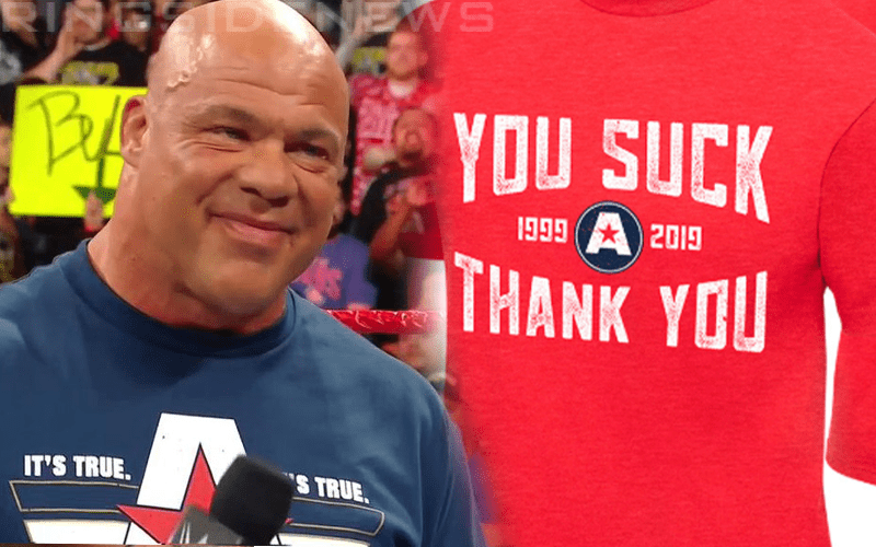 The fact that fans chant “you suck” at someone they love and respect might be puzzling for anyone outside of the WWE Universe, but that is just how it has always worked for Angle. He plugged the shirt today so obviously he approves of the design.