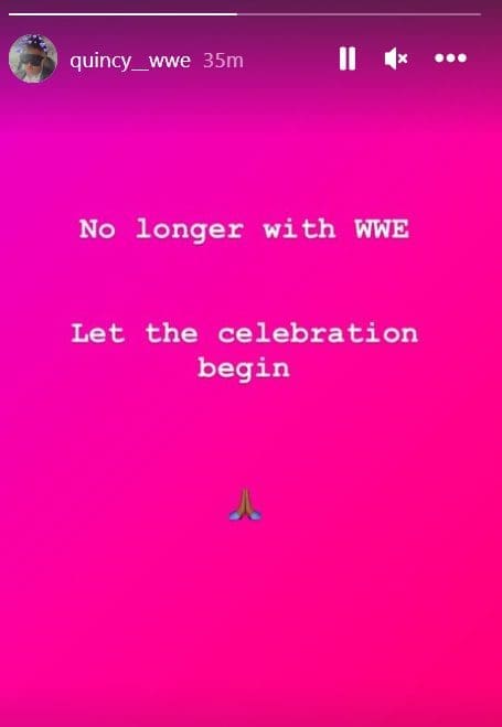 Quincy Elliott posted a story on his Instagram story to announce that he is no longer with WWE. The Super Diva doesn’t seem too broken up about it, because he said the celebration can begin now.