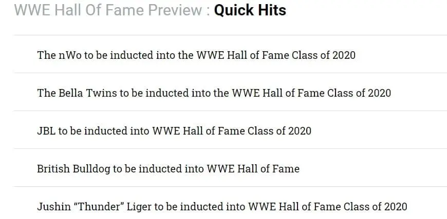 You can find the entries that do appear on WWE’s website below. You will notice that Batista’s article is no longer present.