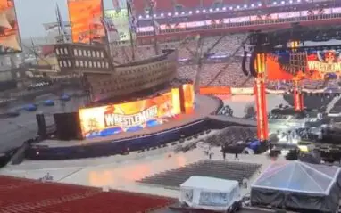 According toFightful, WWE sent men up in hard hats to repair some of the WrestleMania set that was damaged by the storm. They also put a tarp over the large screens to protect them.