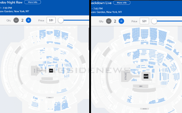 You can check out a side-by-side comparison of Raw and SmackDown tickets for the upcoming MSG show from Ticket Master. As you can see, there are a lot of tickets left for both shows so it is far from a sell out at this point.