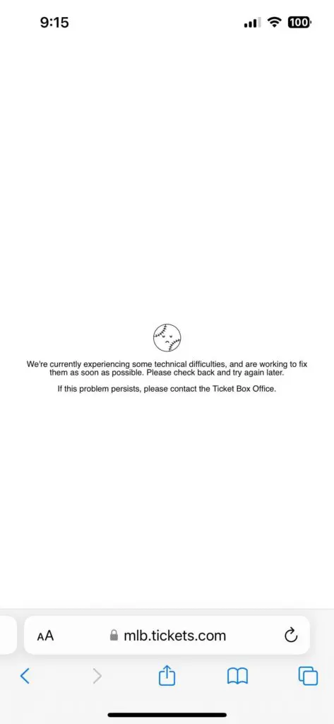 If this problem persists, please contact the Ticket Box Office."