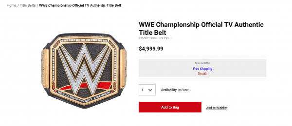 The official WWE Shop is now selling an authentic WWE Championship Title belt for $4,999.99. This is the same quality that they use on television.