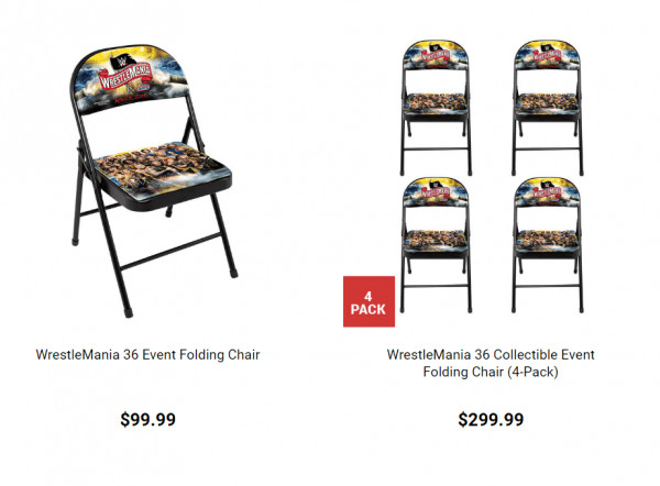 The company is now selling their official WrestleMania event chairs. The WrestleMania 36 logo is featured on the back and a majority of the Superstars on the show of shows is on the seat.