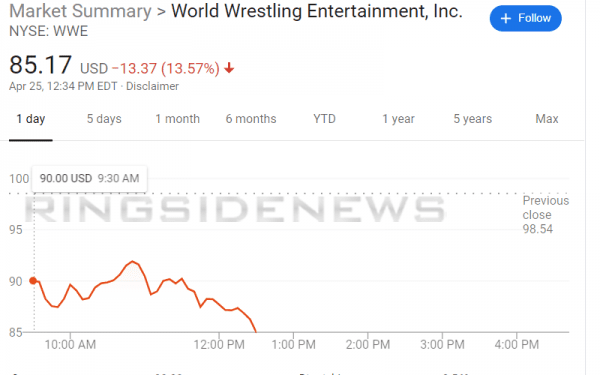 It looks like Vince McMahon blaming absent Superstars on WWE’s poor earnings didn’t help things much for his company. Because as of this writing WWE stock is around $85 dollars, $85.17 to be exact. That is a big drop and could really do a lot of damage for stockholders’ faith in the company.