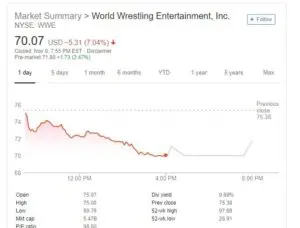 Only time will tell how long it will take WWE to get their evaluation back up or if these sudden drops will scare investors off. But with new television deals coming up in October next year there could plausibly be another spike in price. But for now, if you’re holding WWE stock you might want to consider it a long-term investment right now until it rebounds.