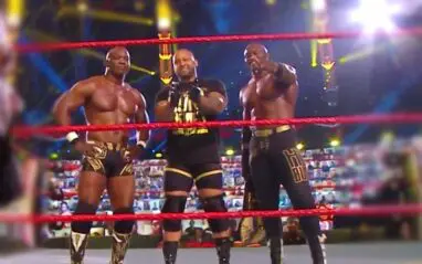 Shelton Benjamin nailed Paydirt on Ricochet and the Hurt Business won the match. As the Hurt Business’ music played, they looked at Alexander and smiled. He did not join them in the middle of the ring, but he was smiling as well.