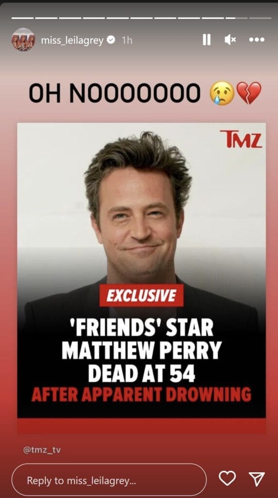 Our hearts go out to Matthew Perry’s family, friends, and fans during this time. RIP.