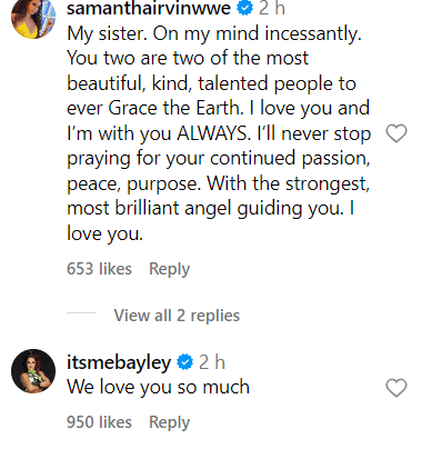 "Love you sis. I’m so so sorry. Just know that we are here for you in any capacity you need. Sending the upmost love and respect 🙏"