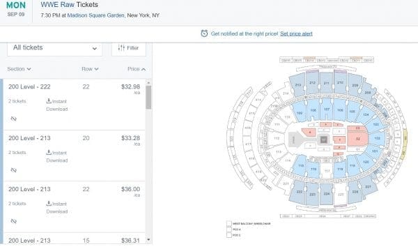 Right now you can get a ticket to the MSG RAW on Stub Hub for $33. Floor seats are around $265 which is insanely low as well.