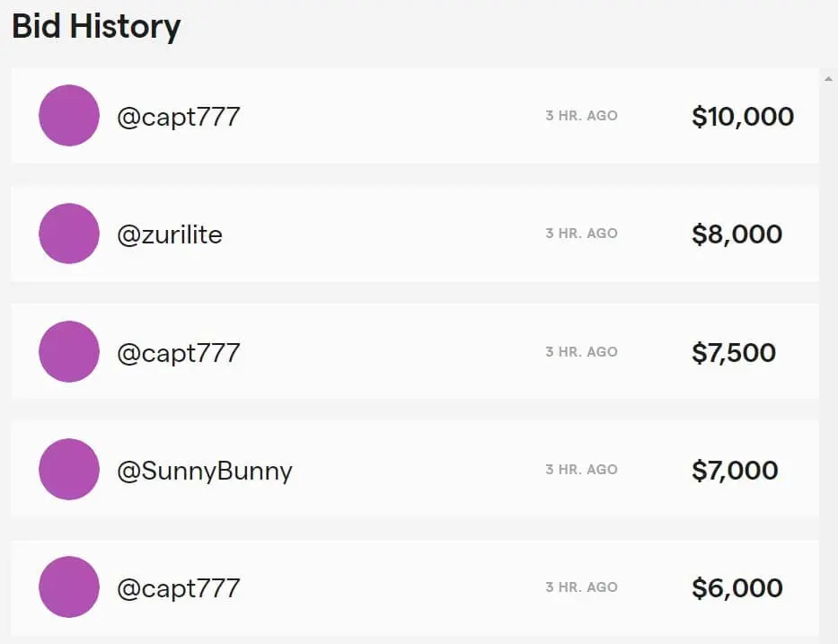 They currently have two items up for auction, and they have some bidders with deep pockets. One auction is currently at $10,000 and the other is at $100,000.