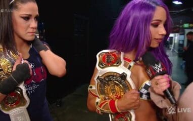 WrestleMania got one tag team match booked this evening on RAW, but it wasn’t for the men. The Boss n Hug Connection were fed up with everyone chasing their titles so they’re going to take them all on.