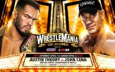 Austin Theory’s music plays and he makes his way to the ring. John Cena’s music hit and he comes down to the ring.