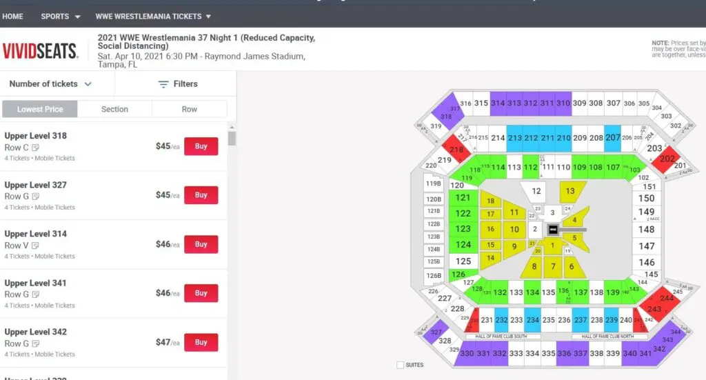 Stub Hub currently shows ticket availability all over Raymond James Stadium. The cheapest two-night ticket combo pack is running $37. This is a far cry from the original number of 40,000 tickets that WWE was rumored to try and sell for the event.