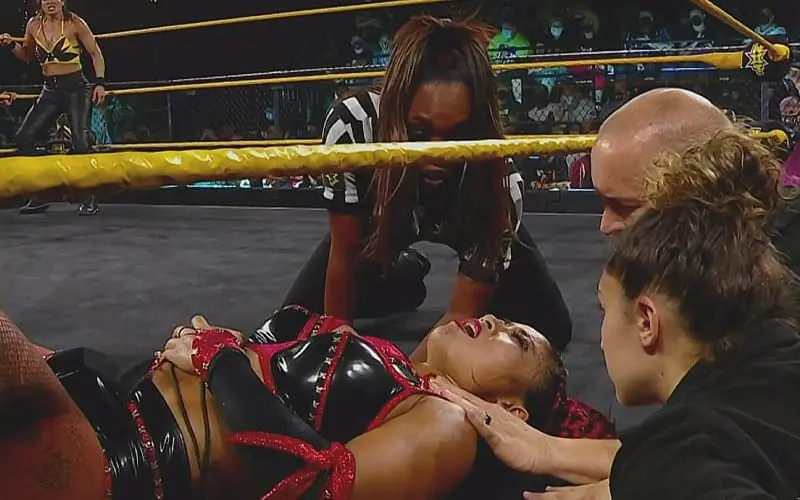 Xia Li took on Raquel Gonzalez for the NXT Women’s Title this week in the main event match of the night. This match was going well, but then Xia Li took a bump and didn’t get up.