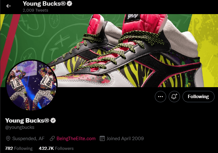 Young Bucks changed their Twitter bio location to “Suspended, AF” on Sunday night, confirming that they are suspended. They didn’t have anything in their bio, but that location said enough.