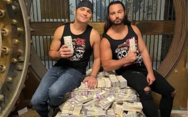 The Young Bucks’ official Twitter account just uploaded two very interesting photos. The Jackson brothers were in a vault and sitting on a pile of money. They also had some fat stacks of cash in their hands.